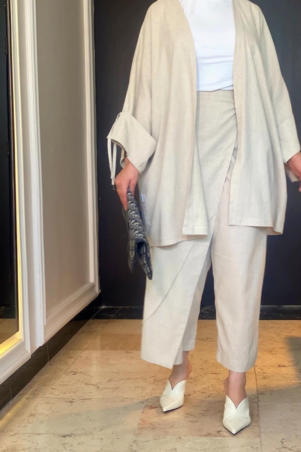A suit cardigan with pant