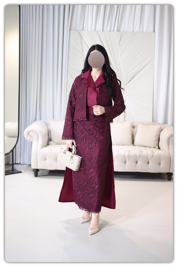 cropped jacket with skirt and maxi vest