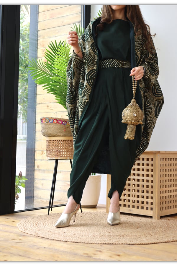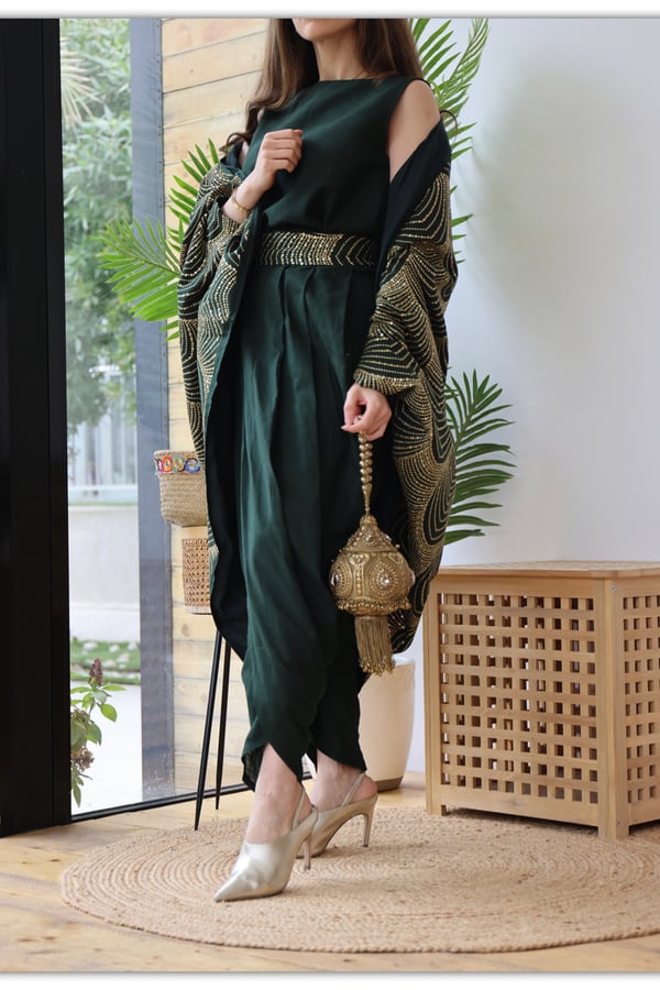 cape , blouse and pant