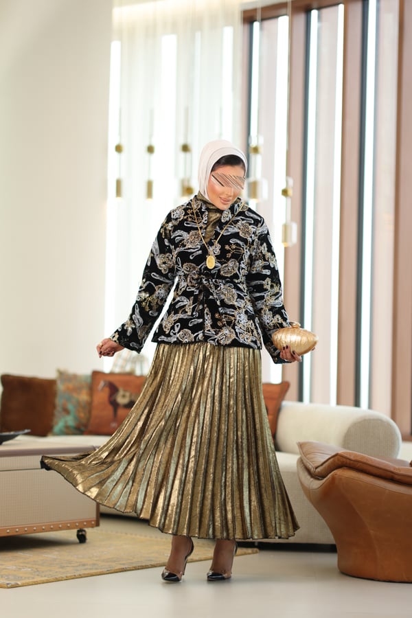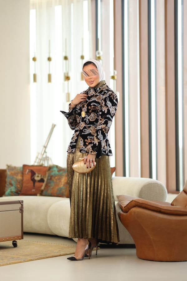 jacket, top and skirt