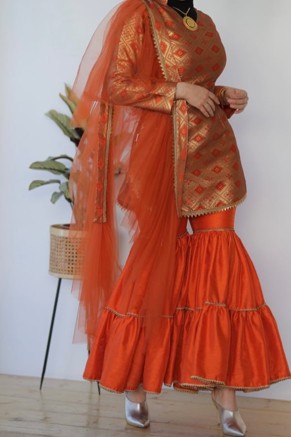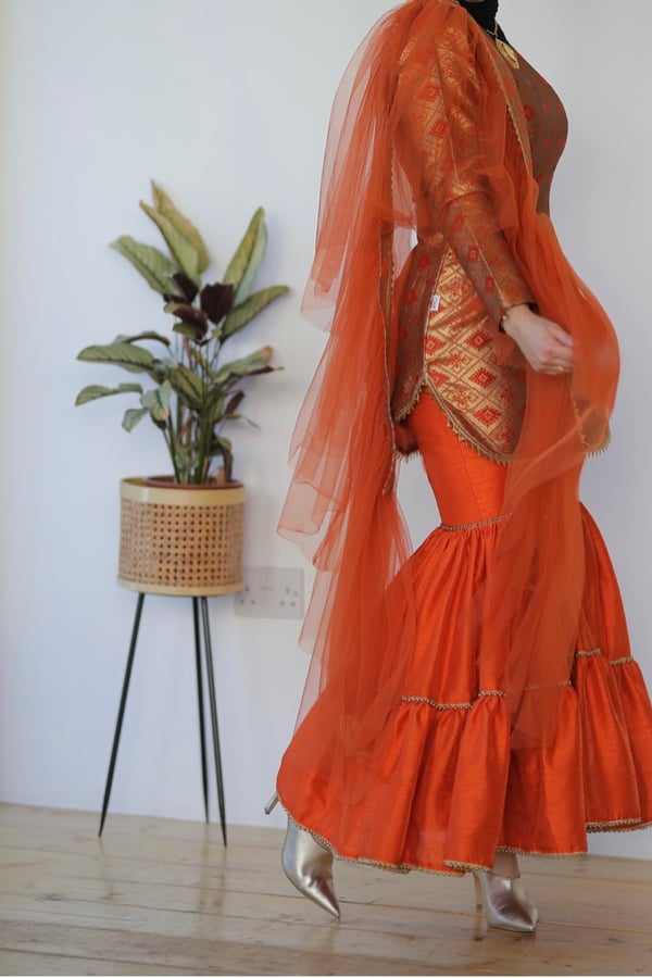 asuit blouse , pant ,and scarf
