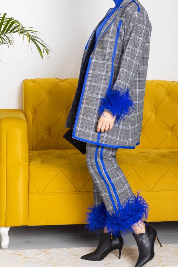 A suit jacket, blouse and pant
