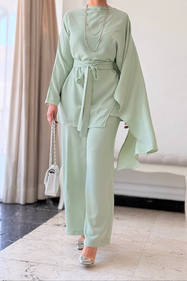 shirt with fixed scarf and pant