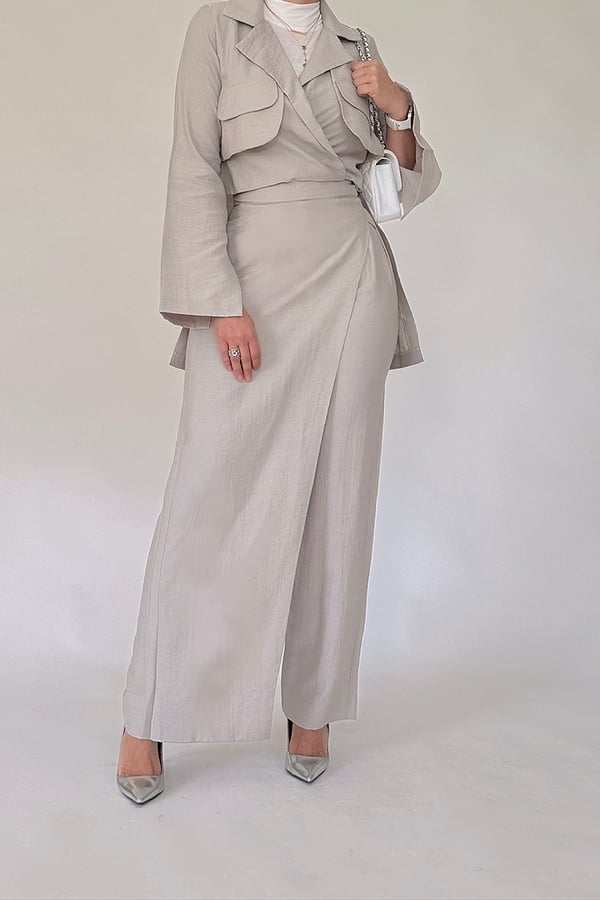 cropped jacket front and maxi back you can choose pant pr skirt