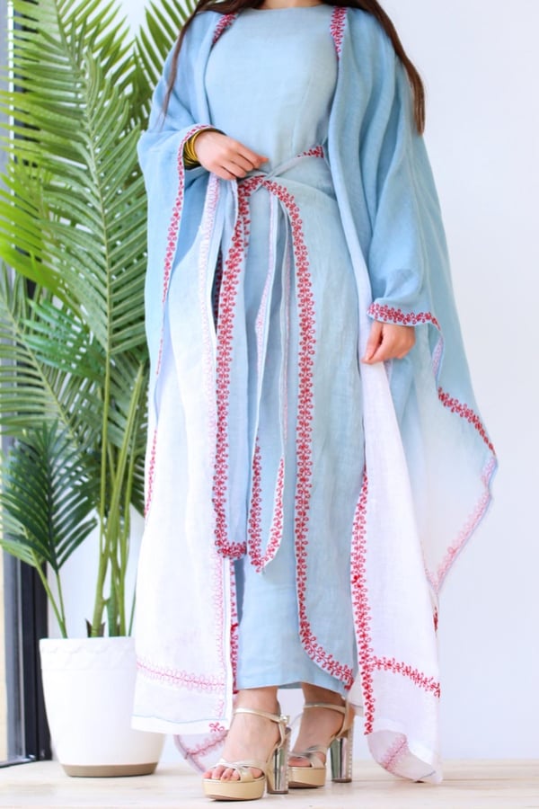 A suit dress with cape