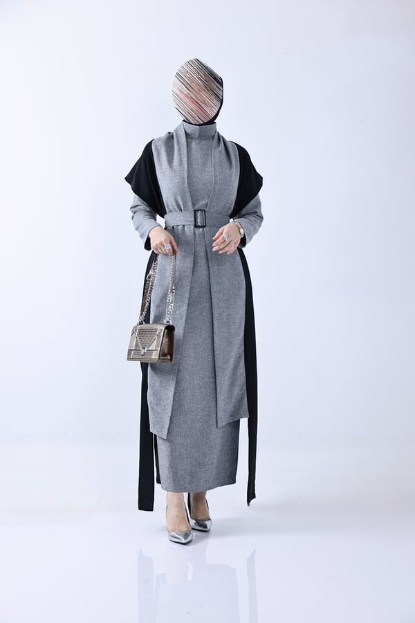 dress with belt and scarf